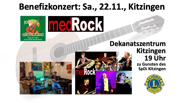 Mit Jolly Alehouse und medRock konnten zwei Bands mit Kitzinger Wurzeln gewonnen werden, die ohne lange zu überlegen zugesagt haben und dem Konzerttermin bereits mit großer Begeisterung entgegenfiebern.